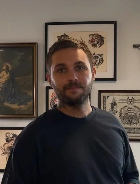 Simon Gyllström is a tattoo artist with 15 years of experience, based in Malmö, Sweden. He runs a private studio in the heart of the city, Paynes Grey Tattoo, where he focuses on large-scale traditional work. Known for his bold lines and timeless designs, Simon pays homage to classic tattooing while bringing his own distinct style to every piece. Alongside his Malmö studio, he continues to travel internationally for guest spots and projects, tattooing clients around the world.